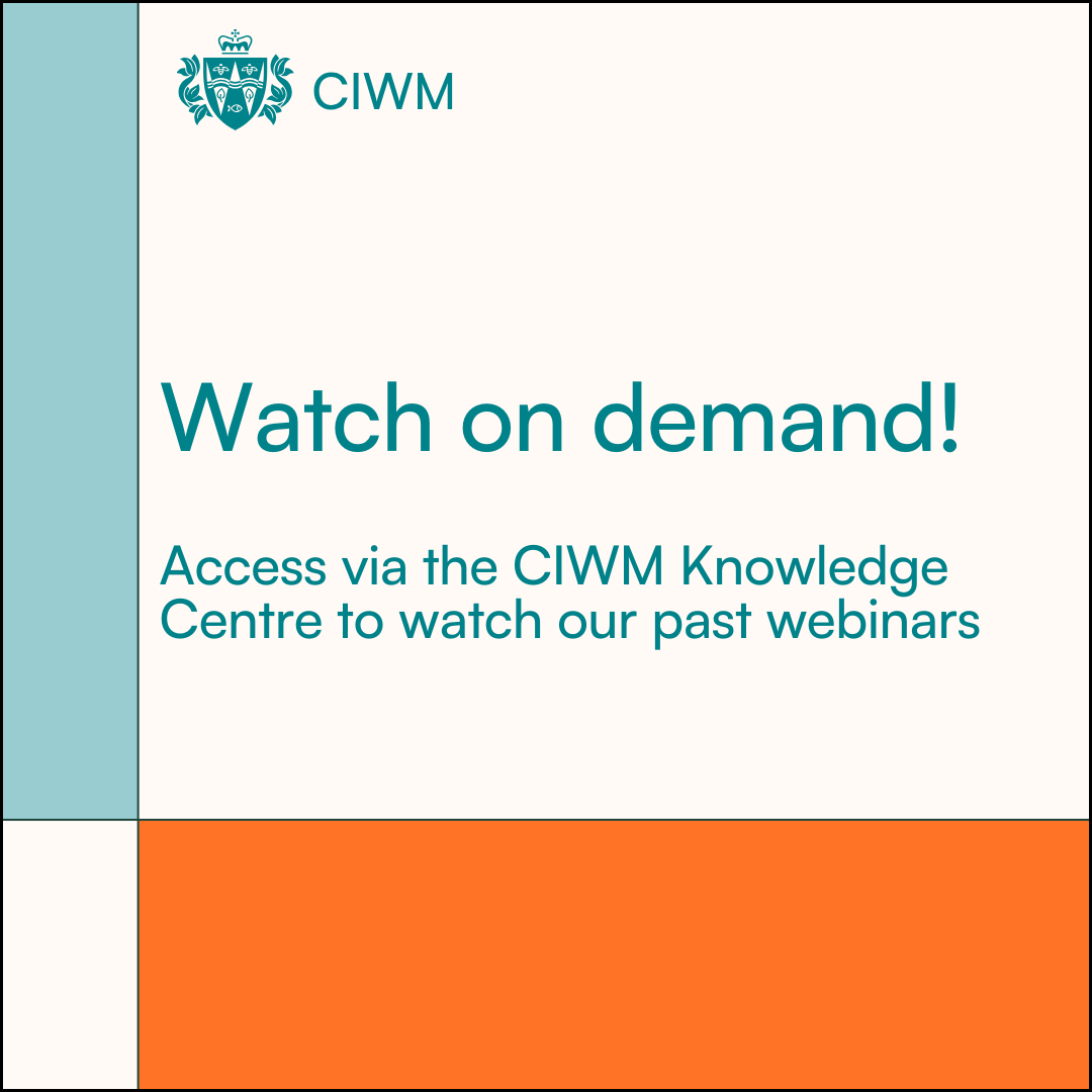 Recordings from past webinars are available in the CIWM Knowledge Centre. Simply filter by "Webinar" in the article type menu to see the latest recordings. Please note, on-demand sessions via the Knowledge Centre are accessible for CIWM members only.