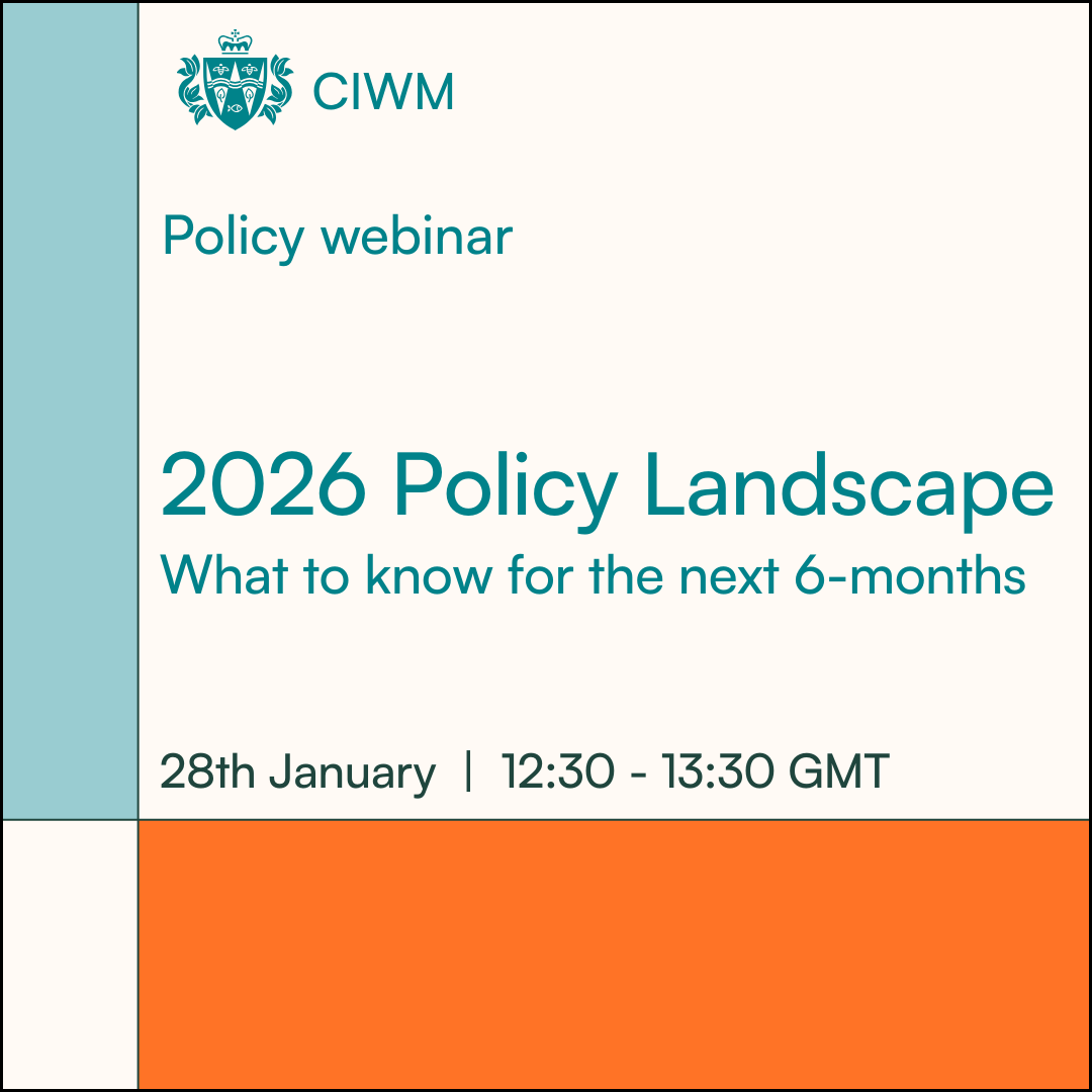 Don't forget to share your attendance online, using the #CIWMWebinars hashtag! We always love to hear how we can further help our members, and if there is a specific topic you think we should be covering, we'd be delighted to hear from you! Please send your suggestions to events@ciwm.co.uk. If you'd like to be considered as a host or panellist of a CIWM Webinar or Podcast please email events@ciwm.co.uk or for advertising and sponsorship opportunities, please email ginny.thacker@ciwm.co.uk.